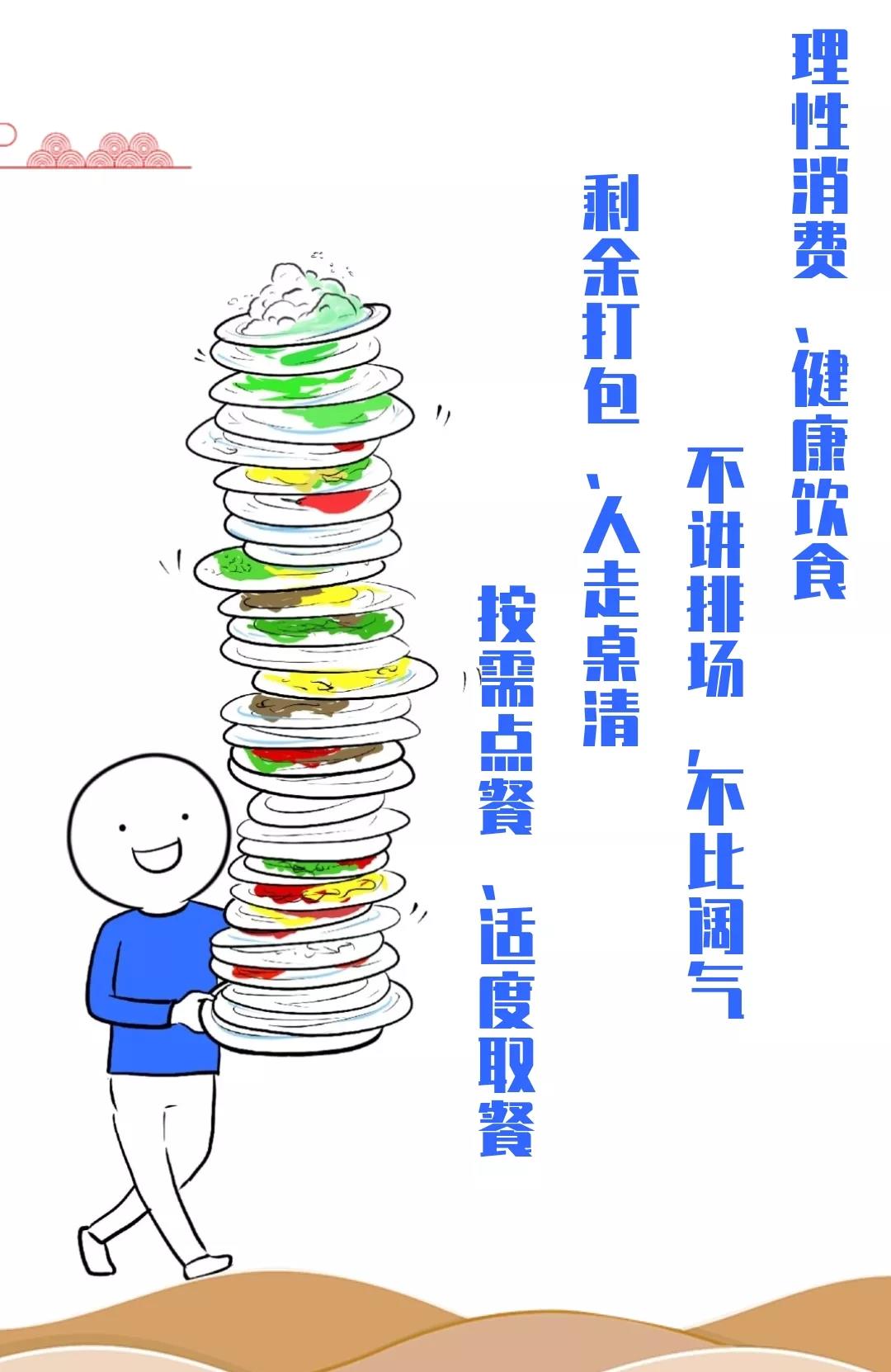 习近平总书记对制止餐饮浪费行为作出重要指示,指出:“餐饮浪费现象,触目惊心、令人痛心!强调坚决制止餐饮浪费行为。”这一告诫既是治当下,也是管长远。中华民族自古以来就有敬天惜粮、勤俭节约的传统,广大干部职工要树立科学饮食新理念,自觉抵制铺张浪费,带头理性消费,点餐适量,剩菜打包,不讲排场,以规范的餐桌礼仪展示我司职工文明形象;带头参与“光盘行动”,反对铺张浪费,养成崇尚节约、厉行节约的良好习惯。