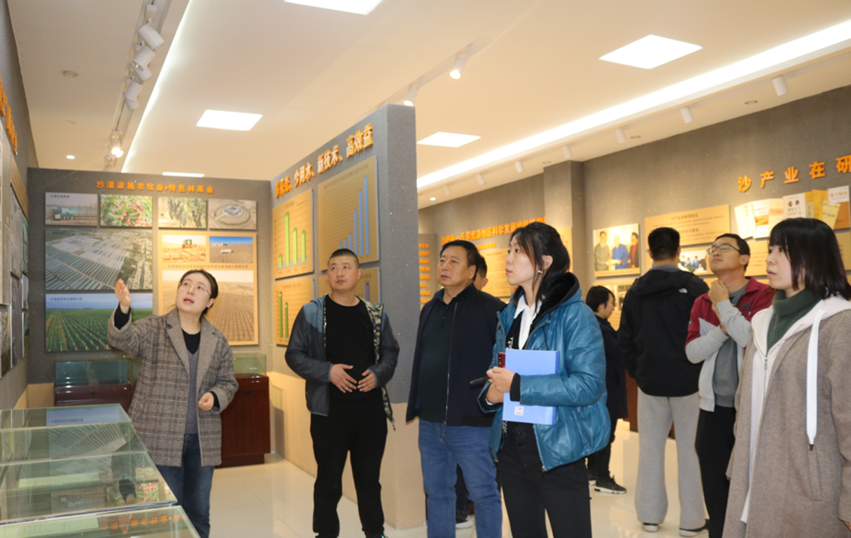 调研中,曲海华一行参观了基地展览馆,在展览馆深情回忆了中国荒漠化防治事业的发展历史,听取了suncitygroup太阳新城关于基地探索工程与生物治沙模式、开展“多采光、少用水、新技术、高效益”的沙产业工作的介绍,详细听取了suncitygroup太阳新城在工程与生物治沙产业的布局、产能分配等方面的介绍。在现场参观完固沙机机械化铺设草沙障的演示后,一行人纷纷对甘肃建投在工程与生物治沙工作中开展的创新型探索表示肯定。