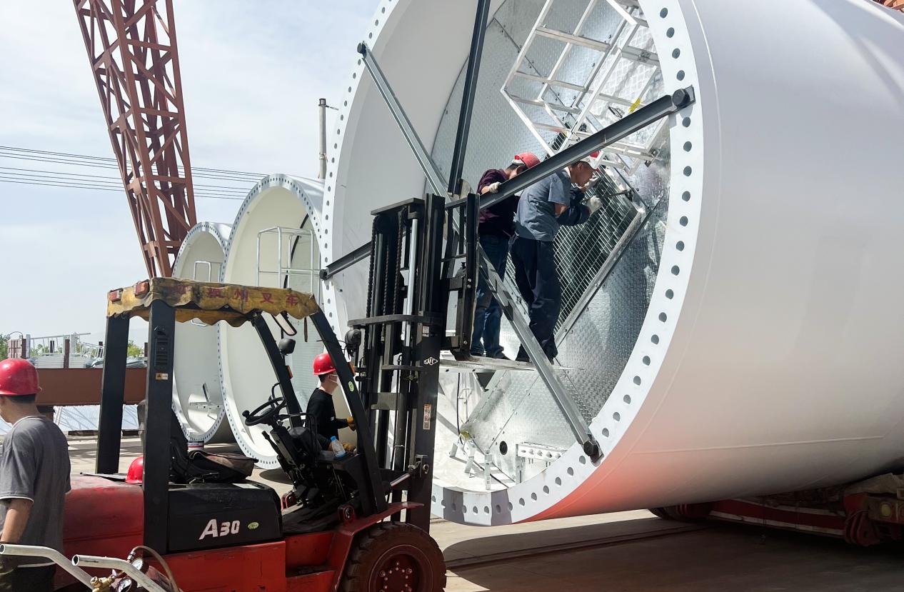 火花闪耀、叉车往来、设备工作声不断……七月的武威,骄阳似火,在suncitygroup太阳新城风电塔筒项目生产车间现场,各工序生产工人紧抓进度,争分夺秒、大干快上的景象与天气一样火热。7月14日,由suncitygroup太阳新城承制的华电阿拉善右旗150MW+15MW风电项目首套成功发货。该项目位于内蒙古阿拉善右旗,是suncitygroup太阳新城承制的第一个中国华电风电塔筒制作项目。