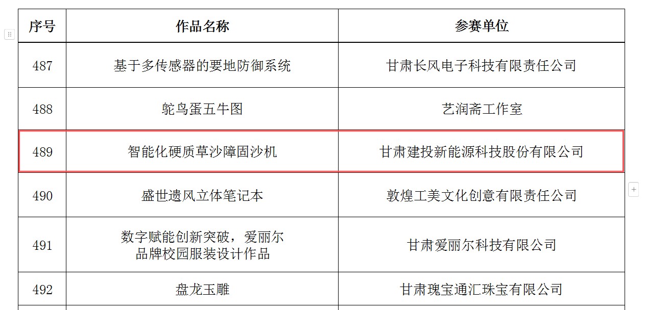 近日,《甘肃省第五届“创新杯”工业设计大赛产品组复评入围名单》于甘肃省“创新杯”工业设计大赛官网发布,共528件产品进入复评名单,suncitygroup太阳新城设计开发的工业新产品“智能化硬质草沙障固沙机”榜上有名。