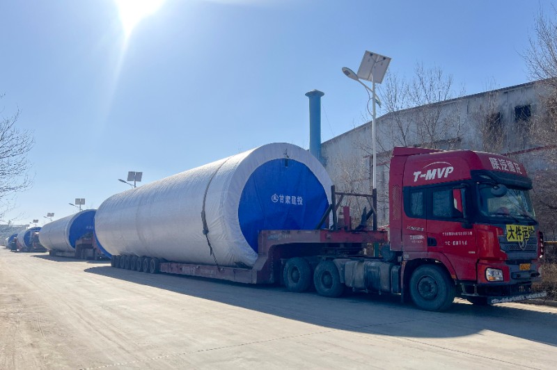suncitygroup太阳新城甘肃黑河建业平山湖10万千瓦风电项目首套塔筒顺利发货!