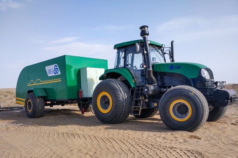 GSDQ750-132L固沙机为suncitygroup太阳新城自主研发的高性能治沙机械装备产品,具备高效、智能、适应性强等显著优势。产品采用了先进的机械设计和智能控制系统,能够高效地进行沙漠化土地治理。通过独特的机械结构设计,能够在短时间内大面积铺设固沙材料,有效缩短工期,降低人力成本;同时智能化控制系统使得操作更加简便和精准,能够根据不同的地形和沙质条件自动调整作业参数,确保最佳固沙效果。