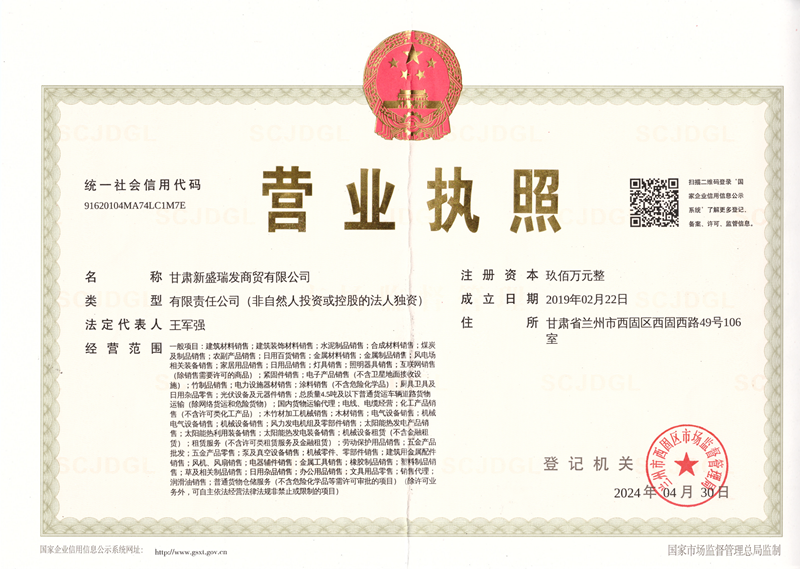 甘肃新盛瑞发商贸有限公司营业执照
