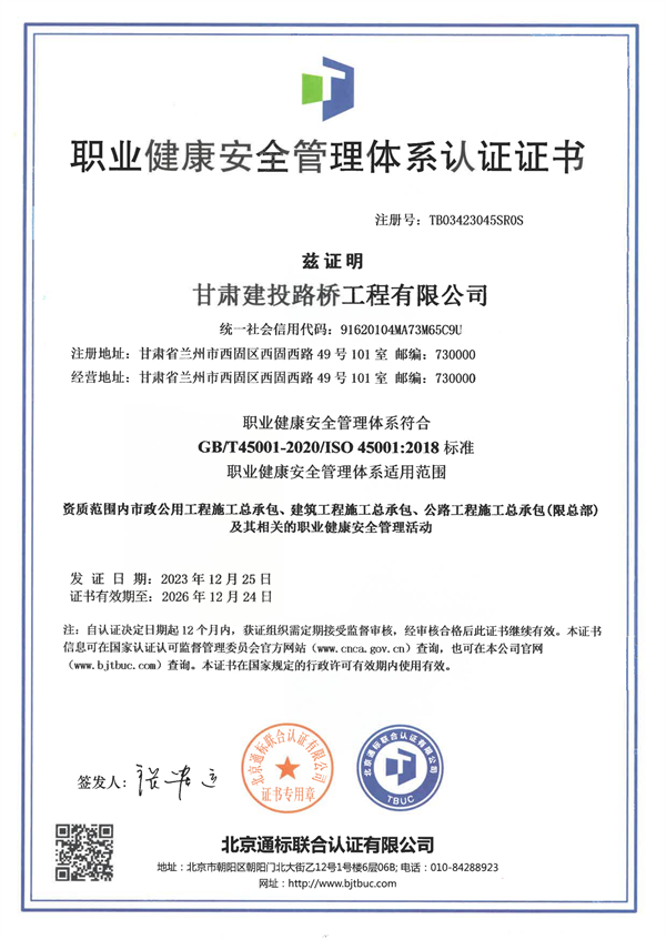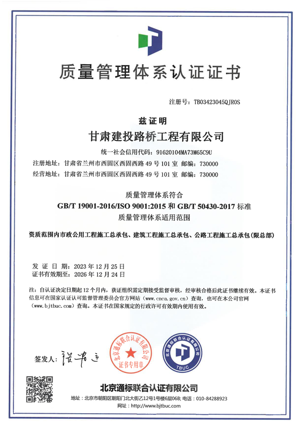 路桥公司管理体系认证