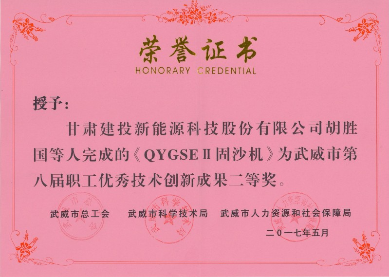 QYGSEII固沙机-武威市第八届职工优秀技术创新成果二等奖