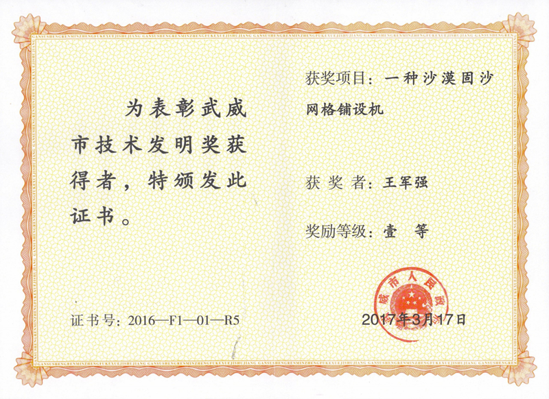 一种沙漠固沙网格铺设机-获奖者:王军强