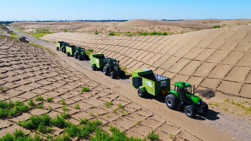 在全球生态环境面临严峻挑战的当下,公司高度重视生态环境综合治理技术开发,秉承“多采光、少用水、新技术、高效益”的沙产业发展理念,组建专业研发团队,并联合科研机构与高校,共同开展攻克生态治理难题的研究。公司经过多年的快速发展,组建的工程与生物治沙试验基地被国家林草局评定为全国荒漠化防治(机械治沙工程)试验示范基地;研发的治沙装备先后获得国家林业行业最高科学技术进步奖——梁希林业科学技术奖二等奖、中国林业创新奖等多项荣誉,其中自主研发的GSDQ750-132L单向牵引式半隐蔽型草沙障固沙机入选《“三北”工程首批适用林草机械装备》目录;与甘肃省治沙研究所联合成立荒漠化防治国际培训实习基地。后期,公司继续凭借卓越的专业能力与创新精神,将在生态环境治理领域取得更大成就。