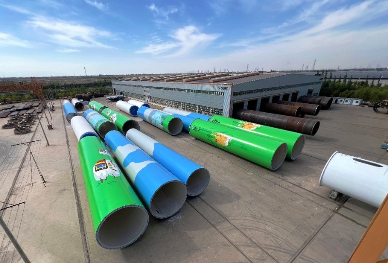 在风电塔筒制造领域,公司拥有压力容器A2资质、电力施工总承包贰级资质及承装(修、试)电力设施许可证四级认证,为产品研发与工程实施奠定了坚实基础。生产基地总面积达51,100平方米,涵盖现代化生产厂房、专用喷涂线及露天材料存放区,并配备46,000平方米的内附件制造车间和50,000平方米的塔筒存放区域,形成规模化、集约化的生产布局。通过采用高强度钢材及先进的焊接、防腐工艺,公司确保塔筒产品在极端风场环境下的结构稳定性和长周期耐久性,可适配1.5MW至7.0MW不同功率机组需求。截至目前,公司已累计完成60余个风电项目,交付塔筒超1,100套,覆盖国内多样化风场场景,并与金风科技、明阳智能、华润电力等头部企业建立了长期战略合作,市场份额持续扩大。