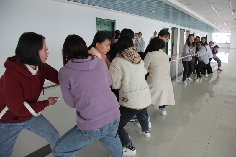 随后,开展了夹乒乓球、拔河等精彩纷呈的趣味活动。在夹乒乓球活动中,女职工们通过接力跑,用筷子将一个盘子里的乒乓球夹到另一个空盘子里,以用时最少的取胜。平时给人印象自信、成熟、睿智的女职工们,在活动中都表现出了活力四射的另一面。